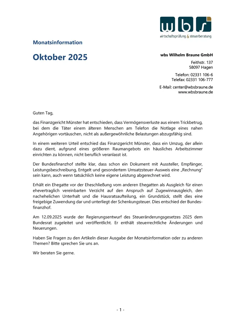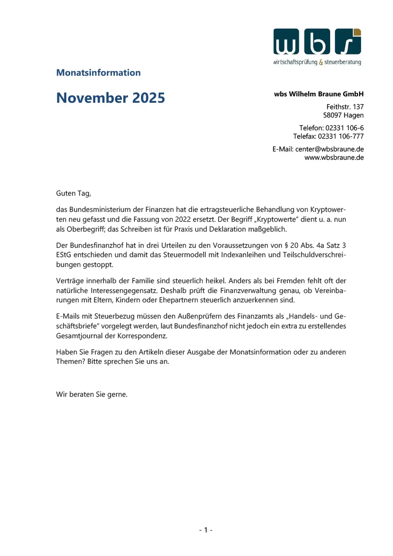 Aktuelles aus dem Steuer- und Wirtschaftsrecht